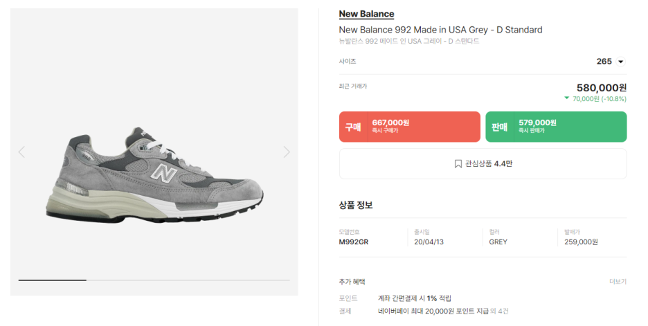 그렇게 저는 992의 매력에 빠져서 바로 크림을 찾아봤죠. 제가 살때 당시에는 50만원이 조금 넘는 가격이여서 와 너무 비싼데 했죠.