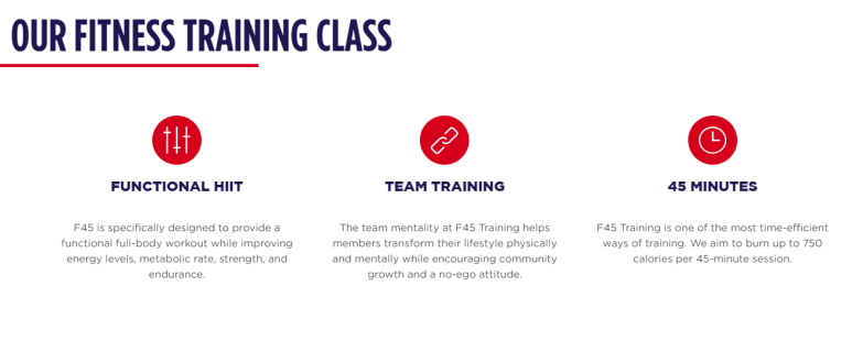 제가 보면서 느낀 점은 옆에서 트레이너들이 붙어서 계속해서 도와주시고 f45 training의 스타일로 계속해서 다른 운동을 하면서 땀을 빼는 운동을 하는 것 같았습니다. 이렇게 사이트에서 보니 45분 동안 750칼로리를 빼는 운동을 목표로 한다고 하네요. 보시면 막 바벨 들고 움직이고 볼 들고 움직이고 노래 엄청 크게 틀어놓고 다 같이 으쌰 으쌰 하고 있는 걸 많이 봤습니다.