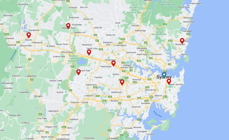 시드니에는 이렇게 8개의 매장이 있습니다.