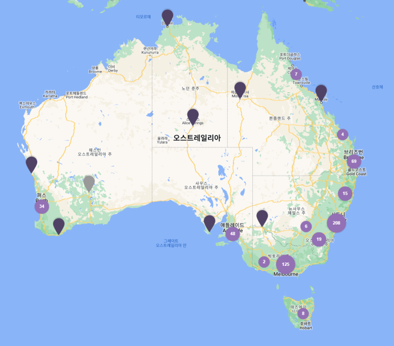 이렇게 많은 지점들이 있습니다. 총 540개가 넘는 매장이 호주에 있다고 하네요. 와..