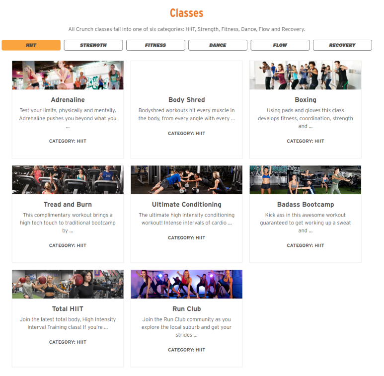 Crunch fitness, Anytime, fitness first, F45가 있습니다.