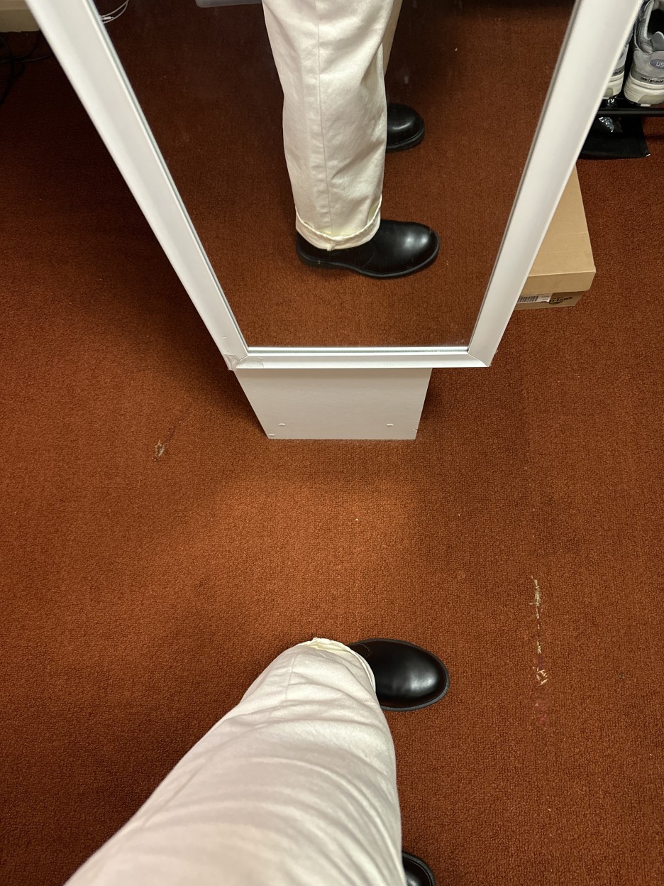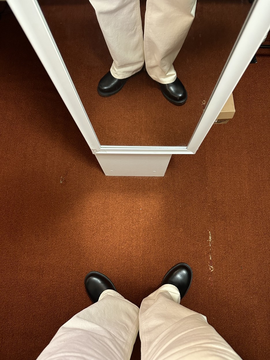 또 이 첼시부츠가 와이드핏 팬츠에 그렇게 잘 어울리더라구요. 또 크림색 바지에 그렇게 잘어울려요.