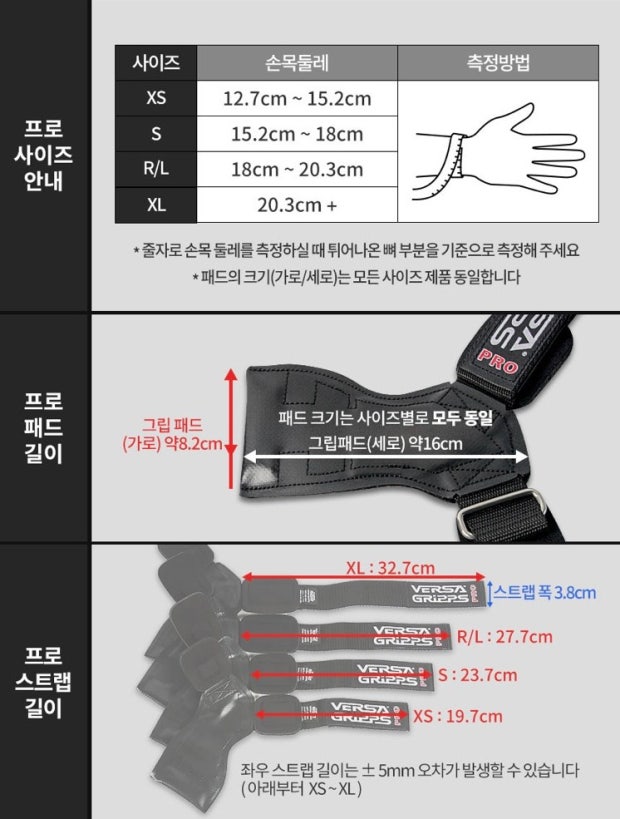 프로는 XS, S, L, XL 이렇게 4가지의 사이즈가 있고 추천 손목 둘레는 저렇게 나와있습니다.